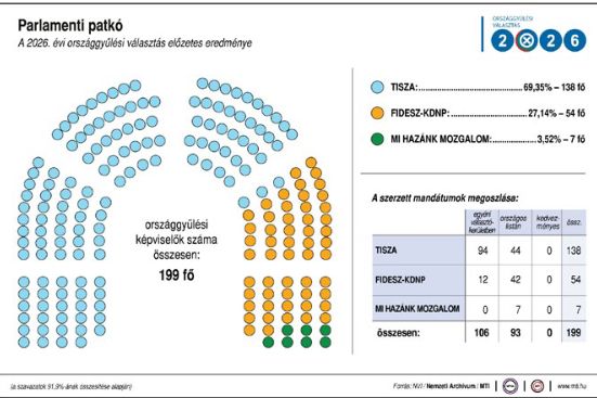 Das vorläufige Endergebnis: Rund 3 Millionen Wähler entschieden sich für die Tisza Partei. Mit 53,7% erreicht die Partei damit eine Zweidrittelmehrheit im Parlament. Fidesz liegt bei knapp 38% und holt nur 55 Mandate gegenüber 138 für die Tisza. Die Mi Hazank endete bei knapp 6% und damit 6 Mandaten.