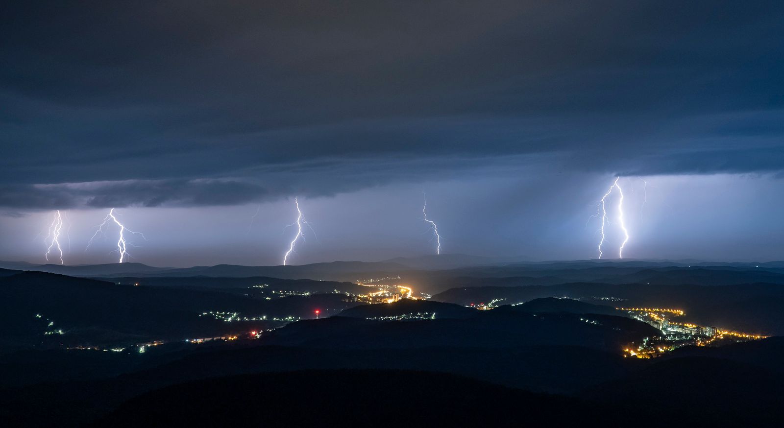 Auf diesem Foto sieht man die enorme Kraft der Natur. Unwetter / Gewittermomente aus der Nacht in Salgótarján. Die Gewitter standen längere Zeit über den Regionen. Auch in den nächsten Tagen ist mit weiteren schweren Wärmegewittern in vielen Regionen Ungarns zu rechen.