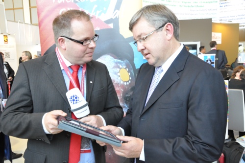 Hier erläutert Flying Media das neue Südafrika-TV dem südafrikanischen Tourismusminister: