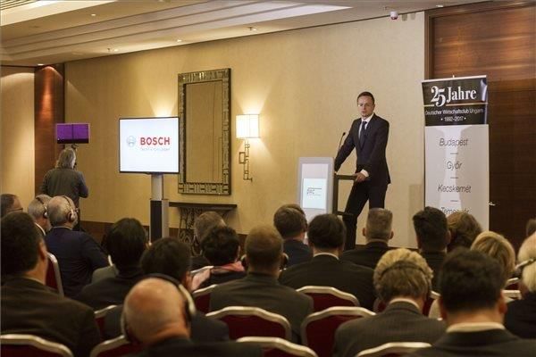 Vor dem Deutschen Wirtschaftsclub (DWC) hielt Außenhandels- und Außenminister Péter Szijjártó am Mittwoch eine Rede vor zahlreichen deutschen Führungskräften. Dabei betonte er sowohl die Bedeutung deutscher Unternehmen für die ungarische Wirtschaft als auch die Bedeutung Mittelosteuropas für die deutsche Industrie, wobei er darauf hinwies, dass der Handel der Visegrád-Staaten Ungarn, Slowakei, Polen und Tschechien um 55% höher als der deutsche-franzözische Warenaustausch sei.