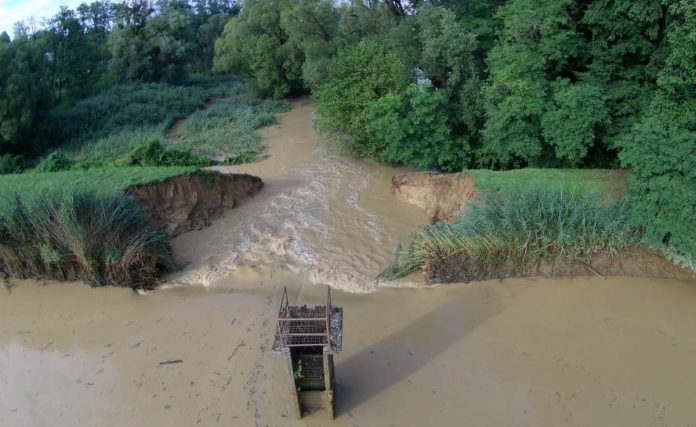 Dammbruch in Galambok im Landkreis Zala. Durch die starken Regenfälle gestern wurde auch der Damm in Galambok aufgeweicht. Die Wassermassen strömten heute durch die Ortschaft und es wurden auch hier zahlreiche Häuser überflutet, Strassen stehen unter Wasser, wie man auch hier auf den Luftbildern des Katastrophenschutzes und der Feuerwehr sehen kann. Vorsicht in dieser Region sind die Strassen teils noch immer gesperrt.