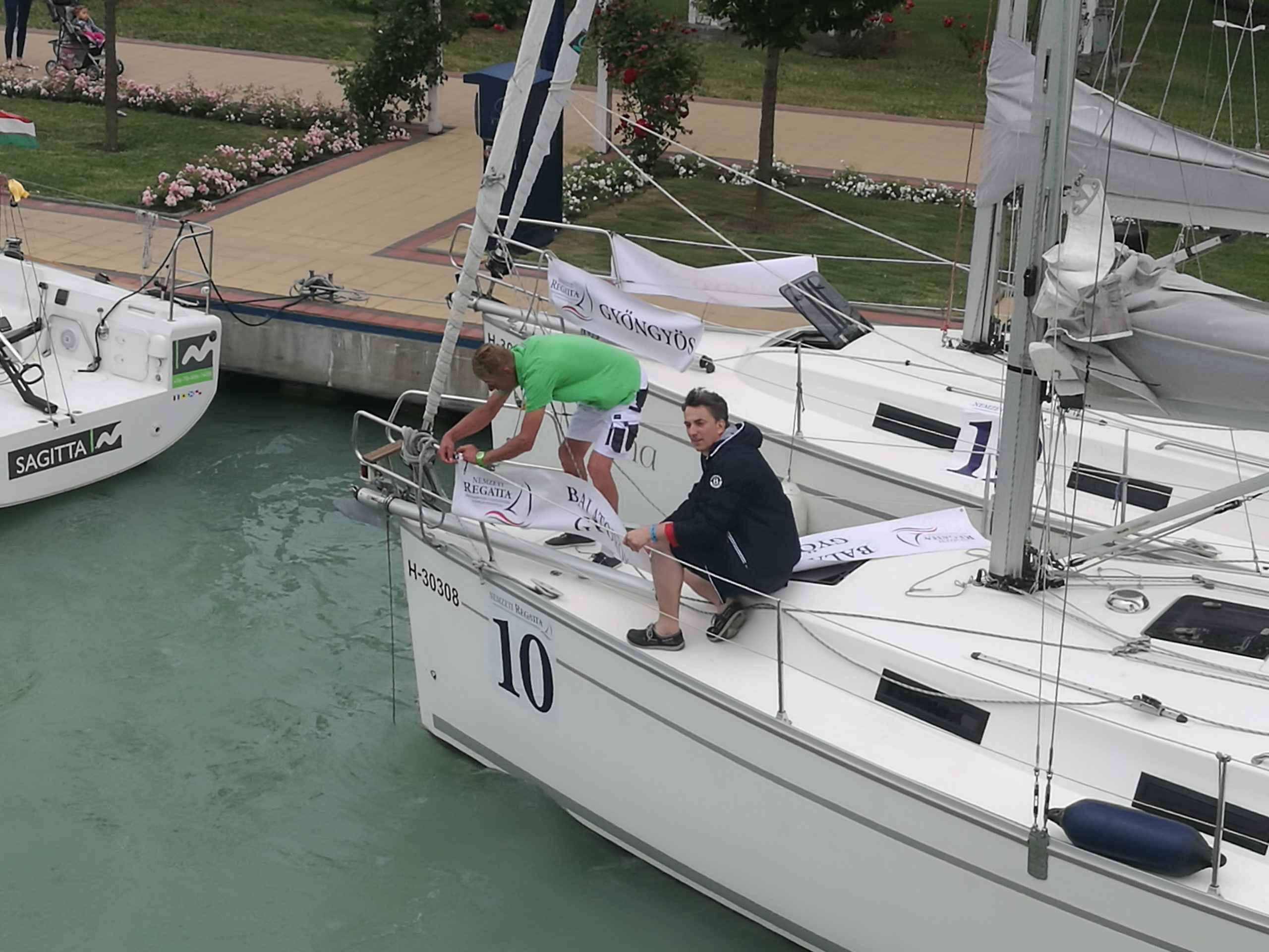Am Morgen ein kritischer Blick zum Himmel in Siófok. Das Regattafest ist startklar trotz dunkler Wolken. Gute Windverhältnisse und der Rest wird schon … Zahlreiche Segelboote, die die einzelnen Regionen Ungarns vertreten sind startklar.