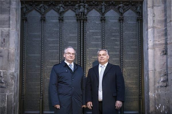 Viktor Orbán stattete der Lutherstadt Wittenberg am Montagnachmittag einen Besuch ab. Obwohl im Vorfeld als „privat“ gekennzeichnet, befanden sich im Schlepptau des Regierungschef noch Außenhandels- und Außenminister Péter Sziíjártó, der Minister für Humanresourcen Zoltán Balog, Justizminister László Trócsányi sowie Lajos Kosa, Minister ohne Geschäftsbereich. Sachsen-Anhalts Ministerpräsident persönlich führte die Ungarn durch seine Heimatstadt von der Schlosskirche zur Stadtkirche zum Lutherhaus, wo in der Ausstellung „Luther! 95 Schätze – 95 Schätze“ u.a. die älteste Lutherbibel präsentiert wird – eine Leihgabe aus Budapest.