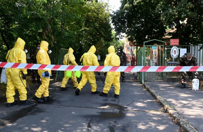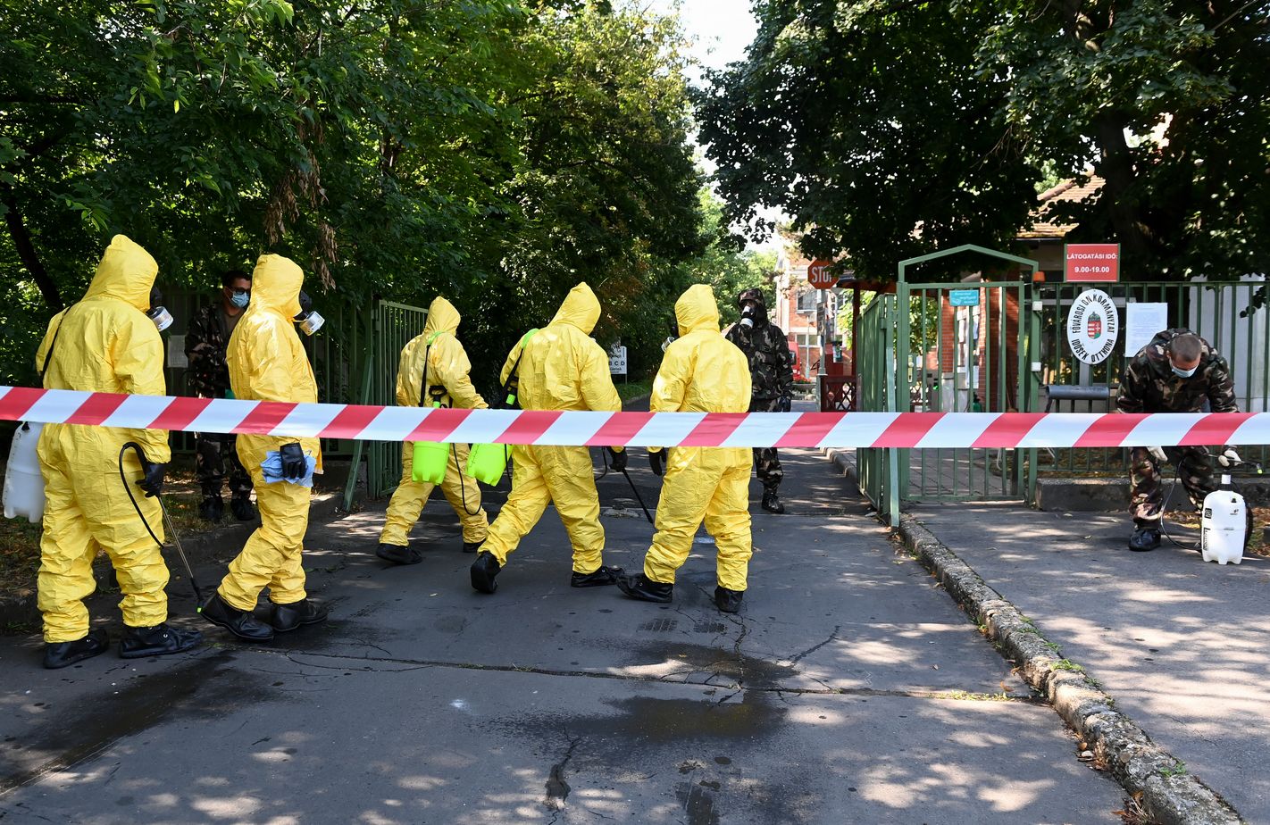Spezialeinheit bei der desinfektion / Foto: MTI/Koszticsák Szilárd
