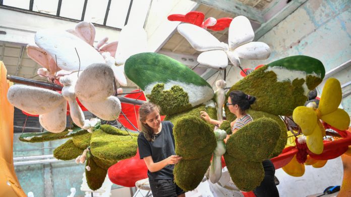 Die riesigen, bunten Wagen sind immer wieder ein beeindruckender Anblick. Dieses Jahr kann man sich auf einen gigantischen Blumentiger freuen, der aus 670.000 Dahlien aus Holland zusammengesetzt wurde.