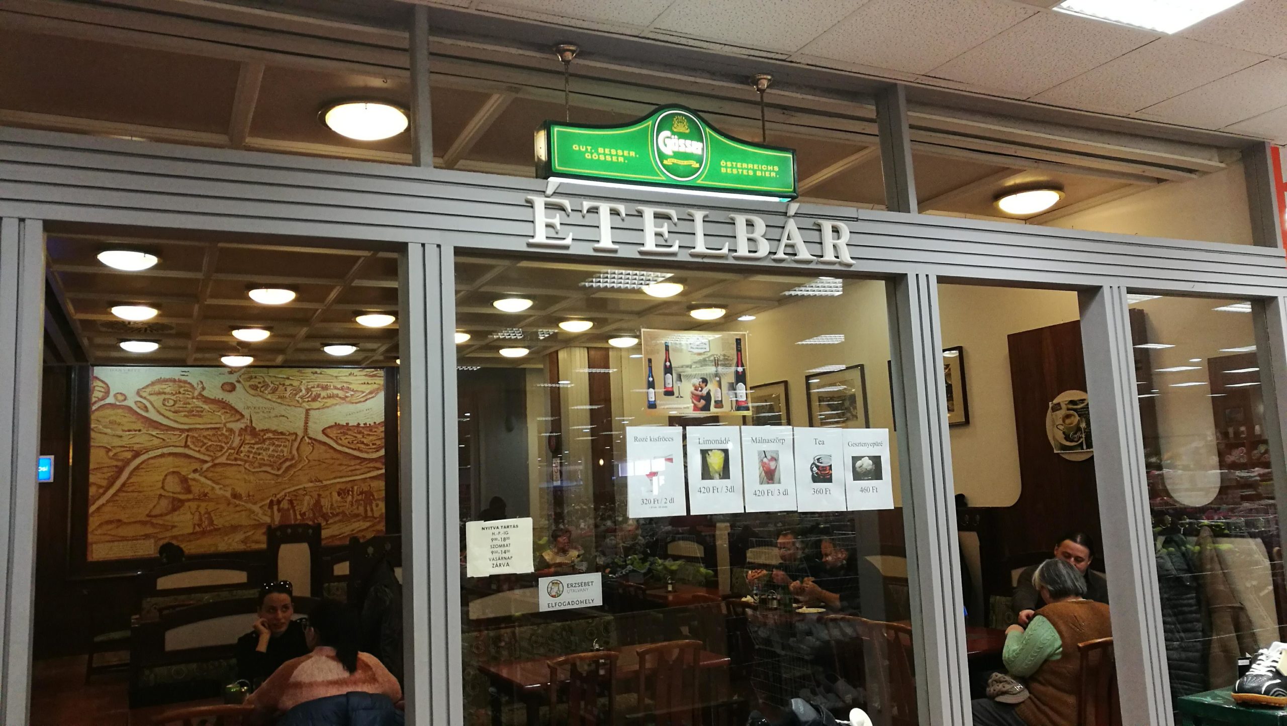 Doch erstmal muss man das Restaurant finden. Dieses befindet sich nämlich im alten Kaufhaus in der Györer Innenstadt in der obersten Etage hinter der Schuhabteilung. Am Ende der Schuhabteilung sieht man bereits das Restaurant hervorstechen.