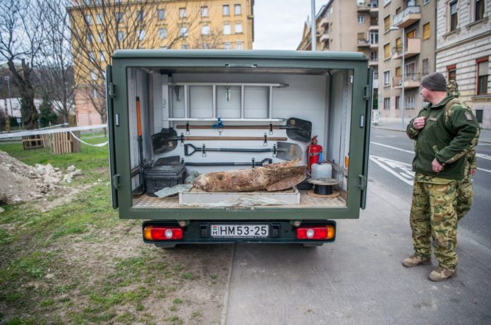 Was war denn da in Budapest los? Eine fünfzig Kilogramm schwere magnetische Zündbombe aus dem Zweiten Weltkrieg wurde bei Bauarbeiten in Tabán gefunden. Bei Bauarbeiten des Kalevala-Parks im I. Distrikt stiess man auf das schwere Bombenstück. Die Bombe wurde in einem speziellen Fahrzeug eines Bombenentschärfers in Tabán dann entschärft. Vorab musste die ganze Region evakuiert werden, zahlreiche Strassen wurden gesperrt. Eine große und aufwendige Aktion!