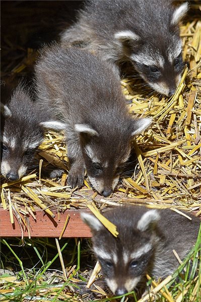 Fünf Waschbär Paare sind am 31. März im Zoo Debrecen geboren, somit sind jetzt insgesamt elf Waschbären zu sehen.