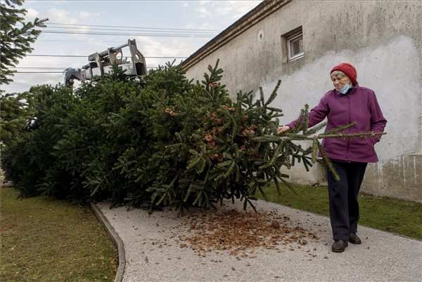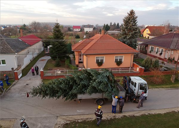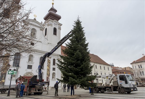 Der Weihnachtsbaum der Stadt wurde auf dem Széchenyi-Platz in der Innenstadt von Győr errichtet. Die Nordmann-Kiefer wurde von einem Ehepaar aus Tét, Ferencné Gyöngyösi angeboten.