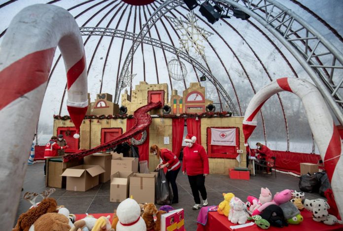 Die Weihnachtsmannfabrik ist wieder da…Freiwillige sammeln Spenden bei der Eröffnung der Weihnachtsmannfabrik im Stadtpark