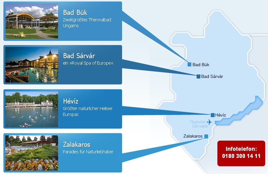 Natriumchlorid, Hydrokarbonat, Schwefel, Jod, Fluor oder Metaborsäure. Beim Anlegen der Kur- und Badeanlagen orientiert sich Zalakaros konsequent am Geist der römischen Spa-Tradition: Sanus per aquam, durch Wasser erlangte Gesundheit. Dahinter steht die Philosophie, dass Heil- und Thermalwasser nicht nur bestehende Krankheiten bessern, sondern vor allem die Gesundheit der Gäste durch Entspannung und Wohlgefühl bewahren soll. Das Heilwasser von Zalakaros ist ideal für die Behandlung von Haut-, Stoffwechsel und Atemwegserkrankungen.