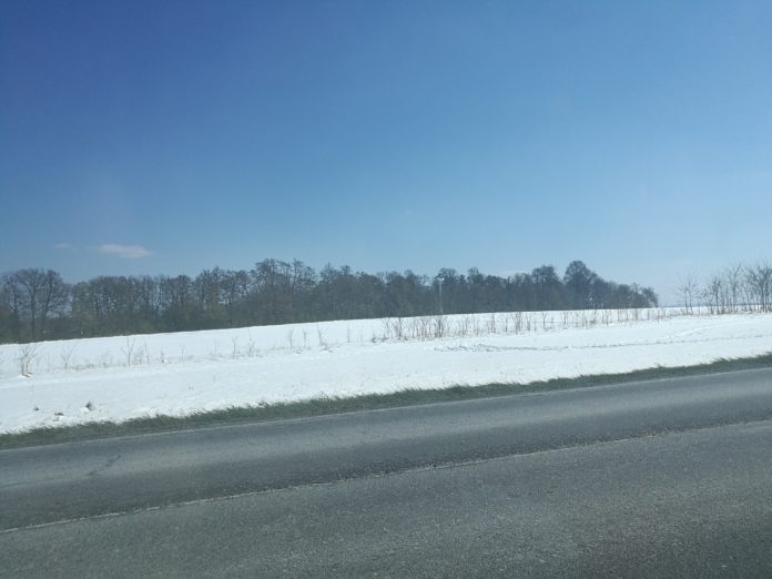 Auch in anderen Regionen Ungarns hat der Schnee für Chaos gesorgt. Hier auf dem Weg zum Balaton liefert das Landschaftsbild in den höheren Regionen immer noch krasse Gegensätze. Die schneebedeckte Landschaft wechselt in sattgrüne und bunte Felder am Balaton. Der April macht halt was er will…