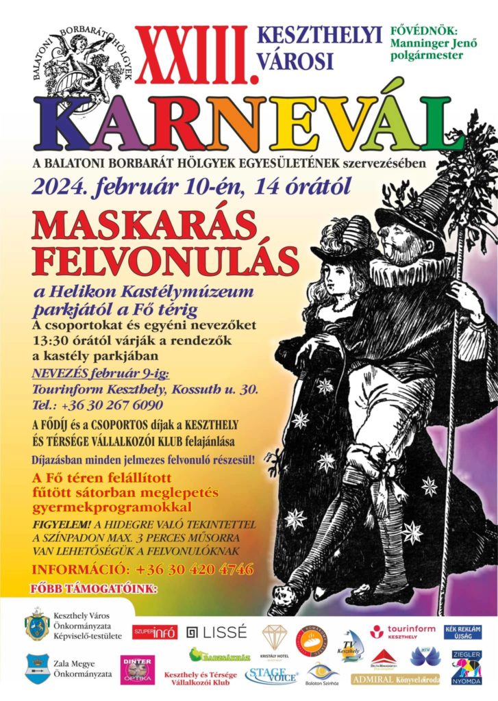 Am 10. Februar findet zum dreiundzwanzigsten Mal der städtische Karneval in Keszthely statt. Der Maskenumzug beginnt um 14 Uhr im Park des Festetics-Schlosses. Die farbenfrohen Faschingsnarren ziehen von dort aus über die Sétáló-Straße zum Hauptplatz. Die Teilnehmer belohnen die Zuschauer – wie üblich – auch mit einer fröhlichen Show.