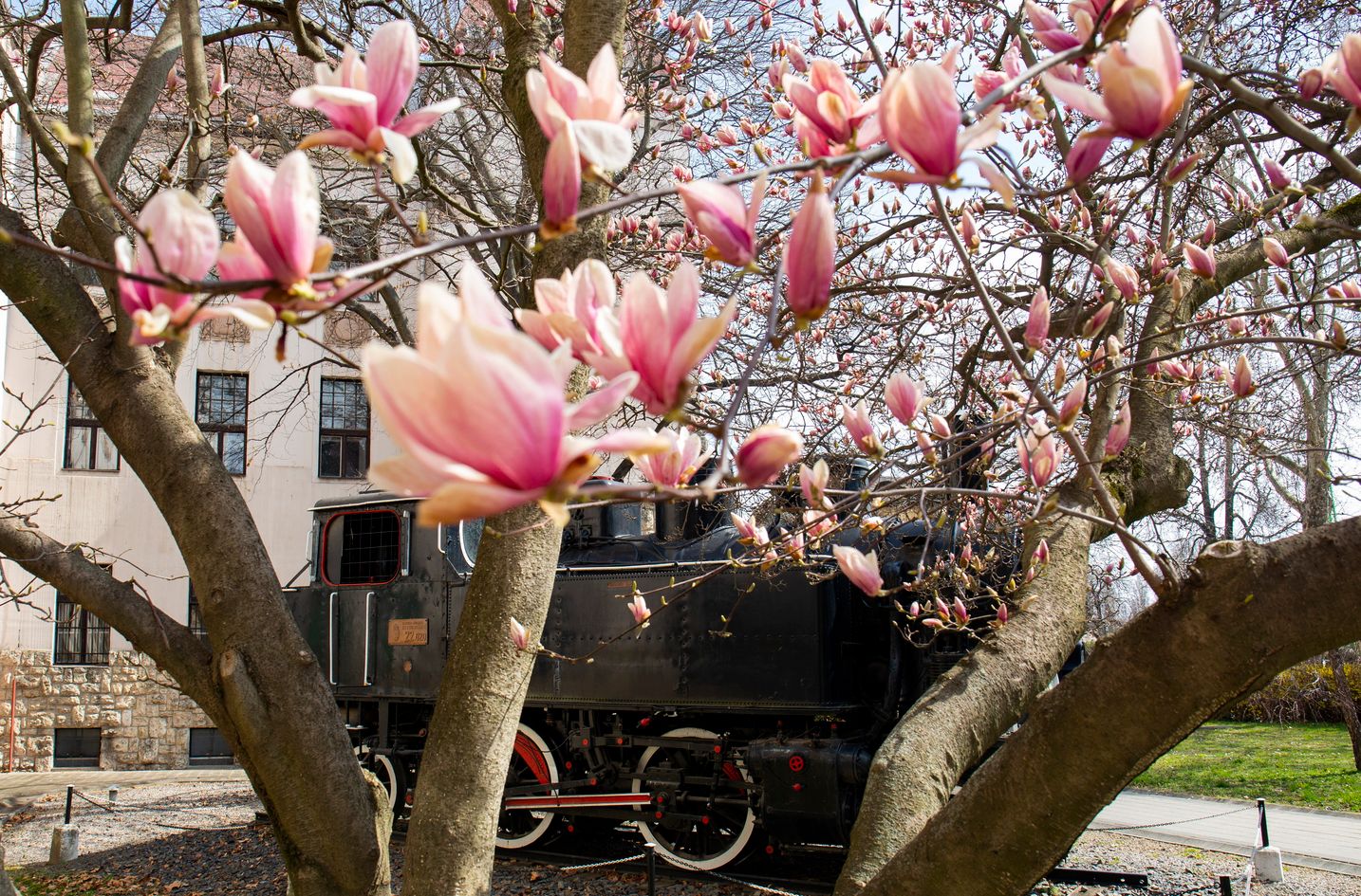 Ein wunderschöner Schnappschuß aus Pécs aus dem Garten der Eisenbahngesellschaft MÁV. Ein Tulpenbaum der gerade in voller Blüte steht…Der Frühling ist da.