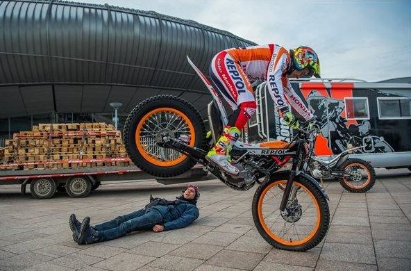 Der elffache X-Trial-Weltmeister Toni Bou aus Spanien zeigte vor der Papp-László-Sportarena einige seiner Kunststücke. Damit sollte Werbung für den am 29. März 2018 erstmals ausgetragenen WM-Kauf in Budapest gemacht werden.