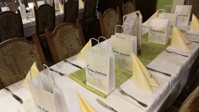Eine ungarische Zahnklinik auf Tour!? Hier macht die Smilezentrum Zahnklinik Aufklärungsarbeit und informiert interessierte Patienten über die Zahnbehandlung in Ungarn. Dies kann auch schonmal bei einem gemütlichen essen wie hier in einem Restaurant stattfinden. So kommt die Zahnklinik zum Patienten und stellt sich vor…