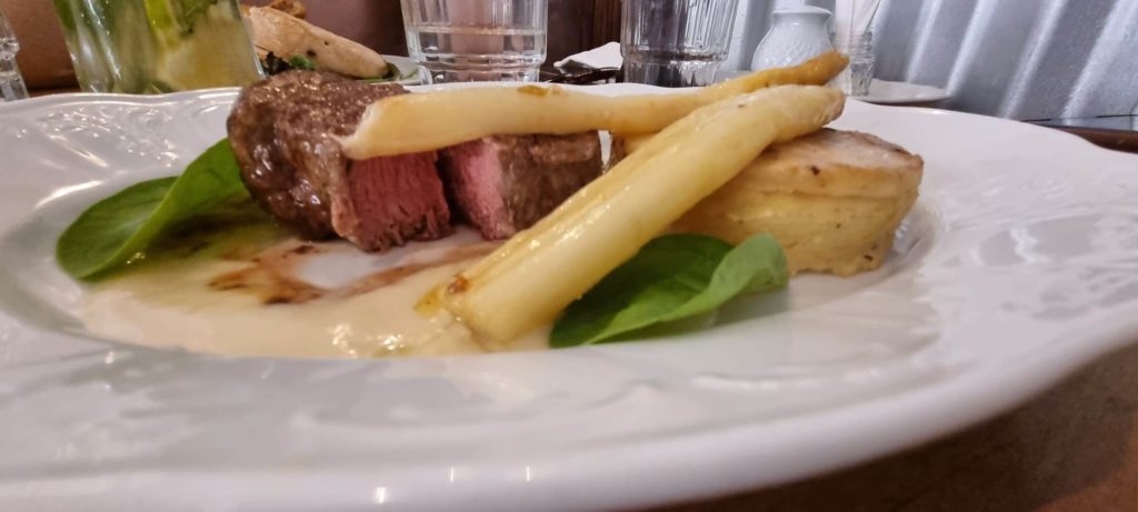 Die Besonderheit des Lokals ist, dass die Nudeln für die Beilagen ebenfalls hausgemacht sind und die meisten Gerichte auf dem besonderen Geschmack von Gänsefett basieren. Neben der klassischen Gulaschsuppe gibt es auch Rinderbrühe mit hausgemachten Suppennudeln. Außerdem gibt es eine bunte Auswahl an Vorspeisen: echte jüdische Eier, Hirnbrot, oder sogar Hortobágyer Fleischpfannkuchen probieren. Es gibt auch eine große Auswahl an Desserts, wie Somlói Galuska oder hausgemachte Hüttenkäseknödel mit Zimt und Sauerrahm.