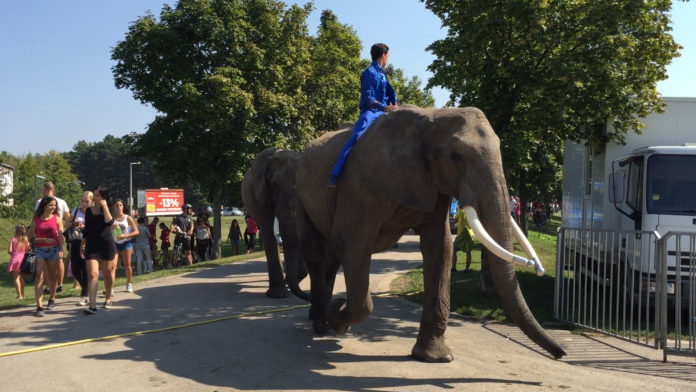 Ein seltener Anblick in der westungarischen Stadt Györ: Elefanten, Zebras und Kamele in der Innenstadt. Mit einer großen Zirkusparade marschierten Artisten und die Tiere in die Stadt ein. In den nächsten zehn Tagen findet hier das ungarisch internationale Zirkusfestival statt. Der Großzirkus präsentiert sein Programm täglich ausser Montags und Dienstags. Die Karten kosten je nach Kategorie zwischen 10-15 Euro.