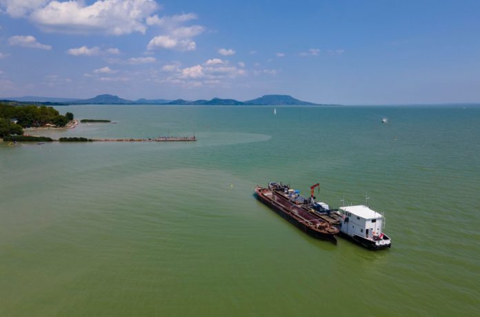 An einigen Stellen wirkt der Plattensee derzeit etwas grün…Ein Baggerschiff ist daher im westlichen Becken des Plattensees unterwegs um nahe des Ufers von Balatongyörök den Grund auszubaggern. Aufgrund des erhöhten Chlorophyll-A-Gehalts im Wasser und der Menge der freigesetzten Algen ist ein Ausbaggern hier erforderlich. Letzte Woche hat das beauftragte Labor der Central Transdanubia Water Directorate, Chlorophyll-A-Werte gemessen, die den Grenzwert im westlichen Becken des Sees deutlich überschritten haben.