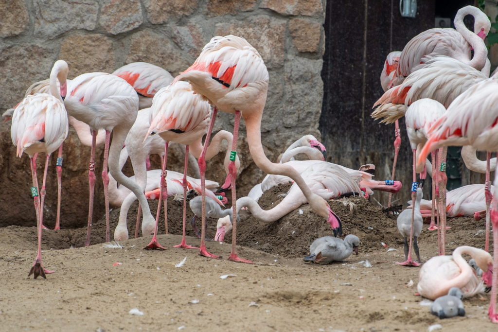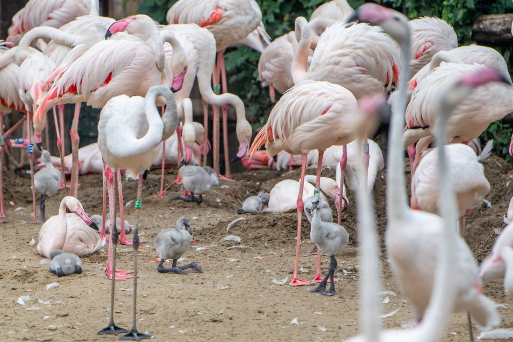 Insgesamt zwanzig kleine Flamingo-Küken schlüpften in den letzten zwei Wochen im Budapester Zoo, somit besteht die Flamingo Kolonie in Budapest zur Zeit aus über 150 Vögeln. Von Jahr zu Jahr schlüpfen hier 15-20 Küken, damit gelten die Flamingos vom Budapest Zoo als einer der am besten wachsenden Flamingo Kolonien in Europa. Interessant ist, dass in den nächsten Wochen die ‚Erwachsenen‘ Flamingos, alle Neulinge in einer Gruppe zusammenbringen, somit kann man sie besser schützen. Also quasi eine Flamingo-Schule…